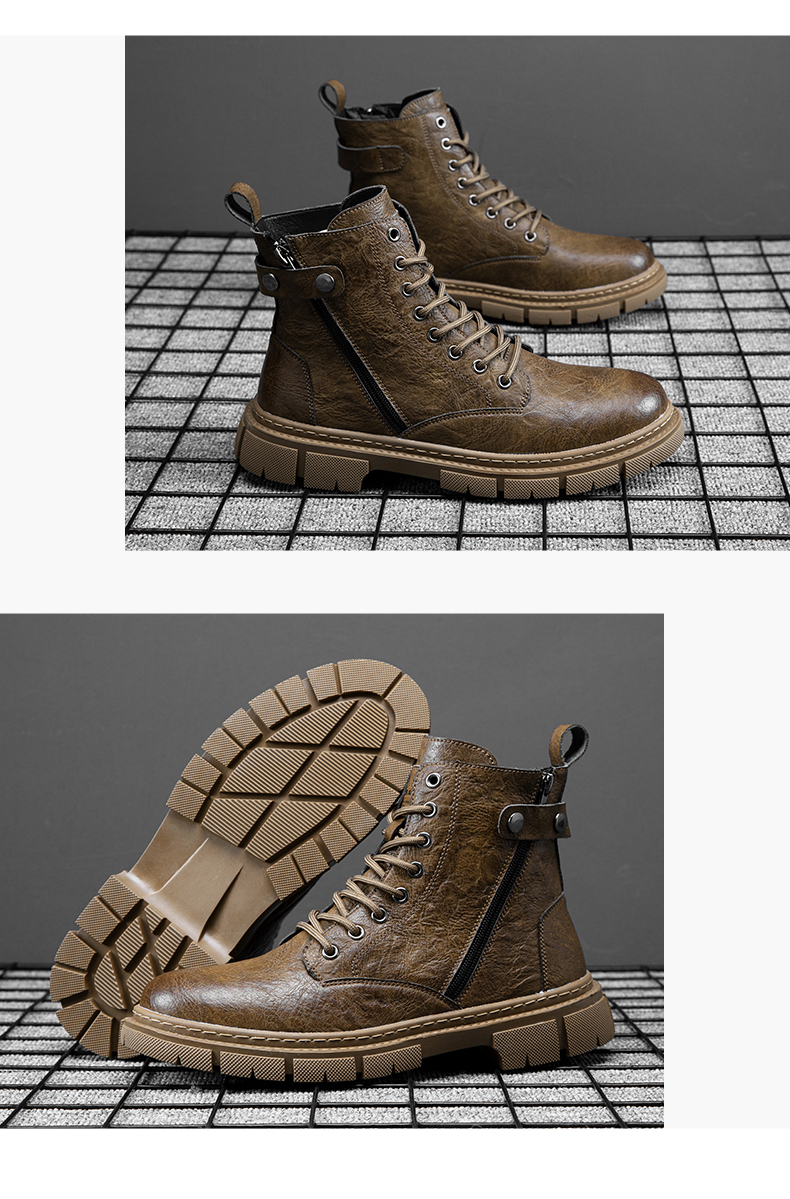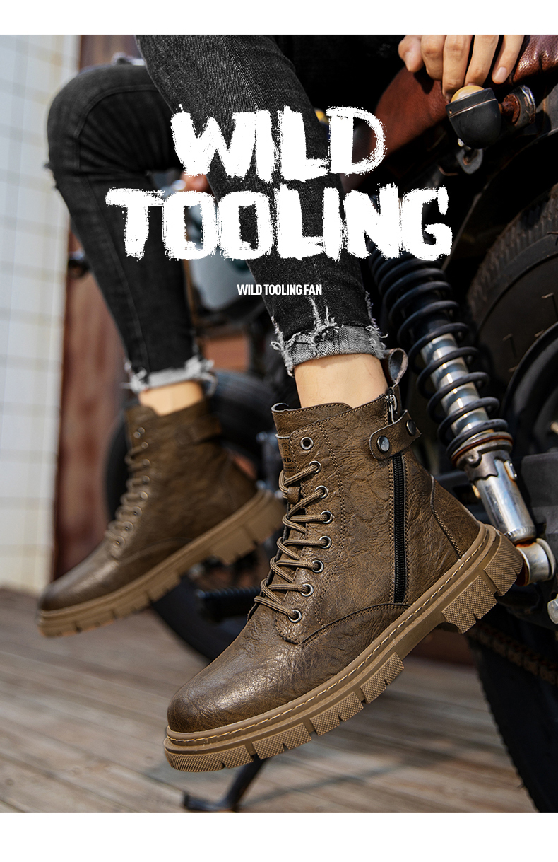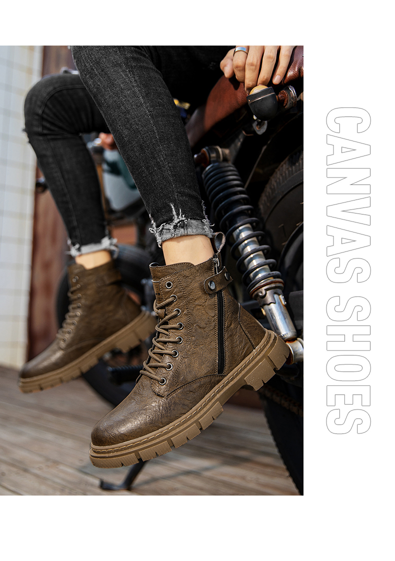 Leather Men's Boots Motorcycle Boots Casual High Shoes Men's Ankle Boots